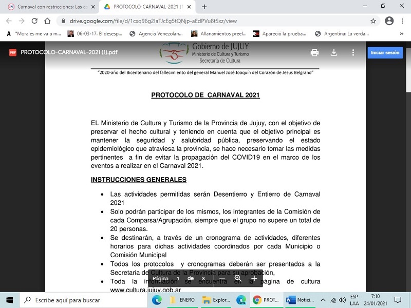 El sitio Jujuy al Momento adelantó que “uno de los anuncios más relevantes fue que se autorizan hasta 100 personas en eventos sociales abiertos. A la par de esta decisión, se confirmó que el Carnaval en su edición 2021 se desarrollará con restricciones y rigurosos controles. Continúa la autorización de las reuniones de hasta 20 personas por comparsa. Pero la novedad está en que queda sin efecto temporalmente la libre circulación en la Quebrada los días jueves 11, viernes 12, sábado 13, domingo 14, lunes 15 y martes 16 de febrero”.