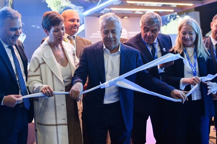 Cornejo reunido con Pullaro en stand de Mendoza en Arminera, otro cipayo al servicio de las corporaciones. Y se dicen, además, “radicales”. (Foto: Prensa GdM).