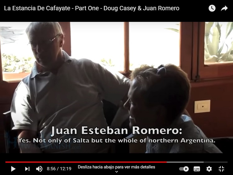 El verdadero poder en Salta. El que está detrás del regreso de los Romero a la Gobernación de Salta, lugares clave si los hay en el país. Manejar la Gobernación y la Intendencia de Salta, son dos “cajas” que los Romero apetecen sobremanera. Allí en el video se ve a Juan Carlos Romero y su hijo Esteban haciendo una descripción de las “bondades de Salta para invertir”, mientras luego aparece el inversionista Doug Casey, quien tiene lazos directos con Wall Street y otros centros financieros internacionales, que son los que determinan quienes van a ser tus gobernantes, mientras vos te desgañitas pegando afiches y carteles y pasacalles. Todo está determinado de antemano, señores. (You-Tube).