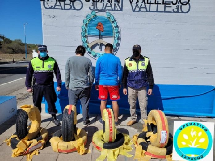 Los gendarmes inspeccionaron un camión de transporte de encomiendas y hallaron las cubiertas, como así también 24 bultos con el vegetal en infracción a la ley 22.415 del “Código Aduanero”.
