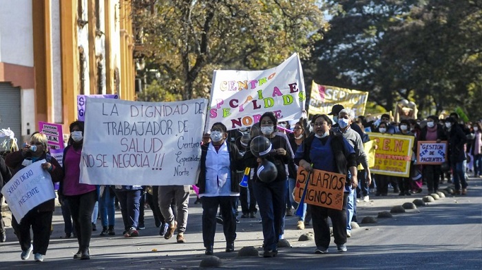 ’’Los manifestantes, en su mayoría enfermeros, personal administrativo y de servicios generales, expresaron su disconformidad por la postura del Gobierno provincial que encabeza Gerardo Morales de no acceder a sus demandas.