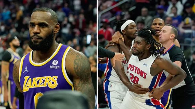 La sanción para Stewart es por “intensificar un altercado en la cancha al perseguir repetida y agresivamente [a James] de una manera antideportiva”. El pívot de los Pistons, fuera de control y con el rostro ensangrentado, tuvo que ser sujetado por compañeros, rivales, entrenadores y árbitros para que la trifulca no fuera a más.