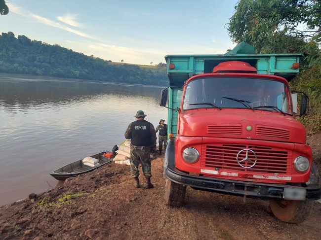 En otro procedimiento, una patrulla de la Fuerza advirtió que se estaban descargando bultos desde un camión hacia la costa del río Uruguay.