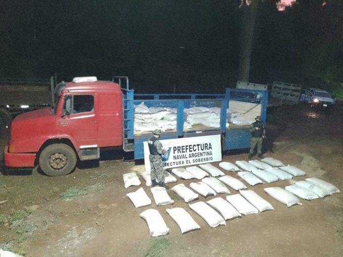 En otro procedimiento, una patrulla de la Fuerza advirtió que se estaban descargando bultos desde un camión hacia la costa del río Uruguay.