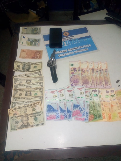 En uno de los procedimientos se incautaron dinero nacional y extranjero, además de un revólver y celular. (Foto: Rosario3).