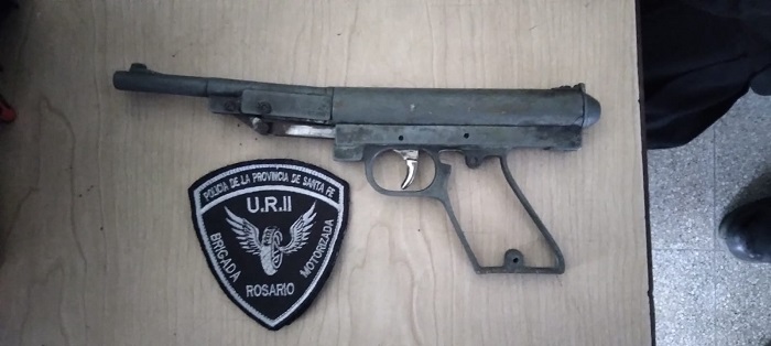 Una réplica de un pistolón también fue incautado a los delincuentes detenidos. (Foto: Rosario3).