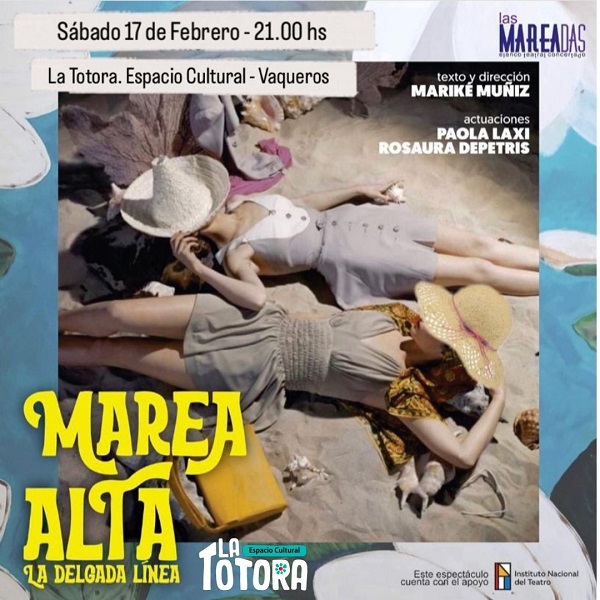 Continuamos el sábado 17 de febrero a las 21 con “Marea Alta- La delgada línea”, con texto original, dirección y puesta en escena cargo de Marike Muñiz, interpretada por las actrices Paola Laxi y Rosaura Depetris, técnica de Cristian Jurado y partitura sonora de Pablo Guerra.